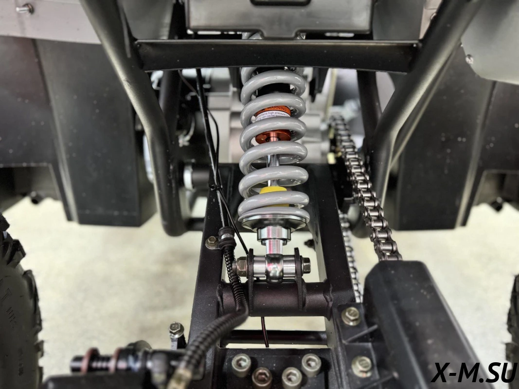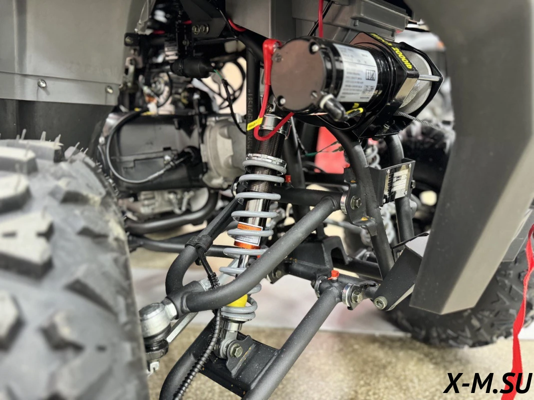 Внутри квадроцикла надежно спрятан одноцилиндровый четырехтактный двигатель с балансировочным валом ZONSHENG с сохранением мощности 22 л.с. с электрозапуском, а также герметичная электрическая система на базе японских комплектующих и аккумулятор повышенной емкости.