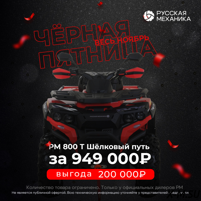 Цена на товар Квадроцикл Русская механика РМ 800 Т серии «Шёлковый путь» не является итоговой и может измениться в зависимости от валютных курсов, общей экономической ситуации или логистических и иных факторов.